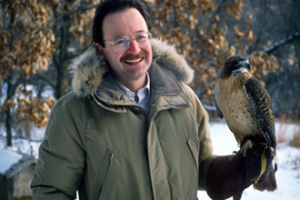 Temple is pictured with his hawk, D.C., at Temple’s snow-covered property in rural Wisconsin in 1989. Photo: Jeff Miller
