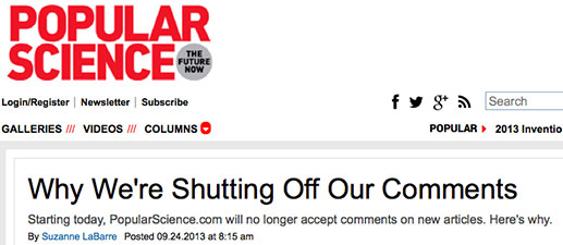 Reseach by CALS faculty members carried weight in a decision by Popular Science magazine to shut off comments to its online articles. “It wasn’t a decision we made lightly,” writes Suzanne LaBarre, the magazines online editor. She cites research by Dominique Brossard and Dietram Scheufele of CALS’s Department of Life Sciences Communication as evidence that “even a fractious minority wields enough power to skew a reader’s perception of a story.”