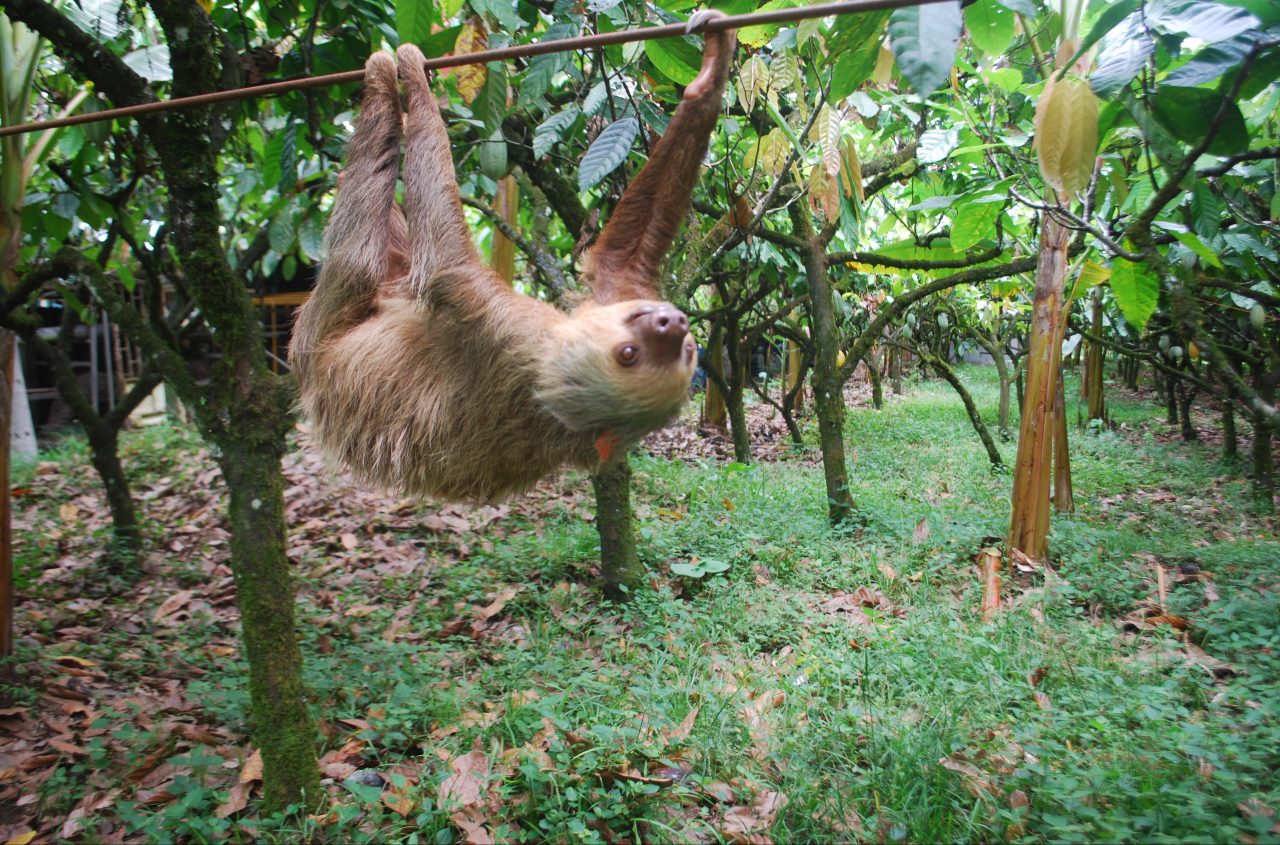 Banner photo: A two-toed sloth transits a plantation in northeastern Costa Rica using a cable ordinarily used to move cacao. A team of UW-Madison scientists recently found why sloths are such deliberate, slow-moving animals. Photo: UW-Madison/Zach Peery