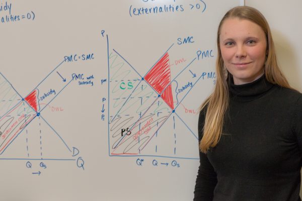 Trace O’Rorke, another student graduating in June, says the program “offers technical expertise that environmental study majors would not necessarily have, while those coming from an economics background will learn how to apply their skills to energy and the environment.