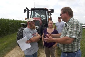 On July 19, at one of the station’s annual field days, Sam Schwer, who works 500 acres and raises beef cattle just north of Lancaster near Fennimore, was examining corn plots on fields following various cover crops planted last fall. Having the station do this on-the-ground research is a “strong decision-maker,” says Schwer, who is president of the Grant County Cattlemen’s Association. “Input costs are rising more and more, and if it works, that’s good — and if it doesn’t, I don’t have to put the money out to test it myself.”