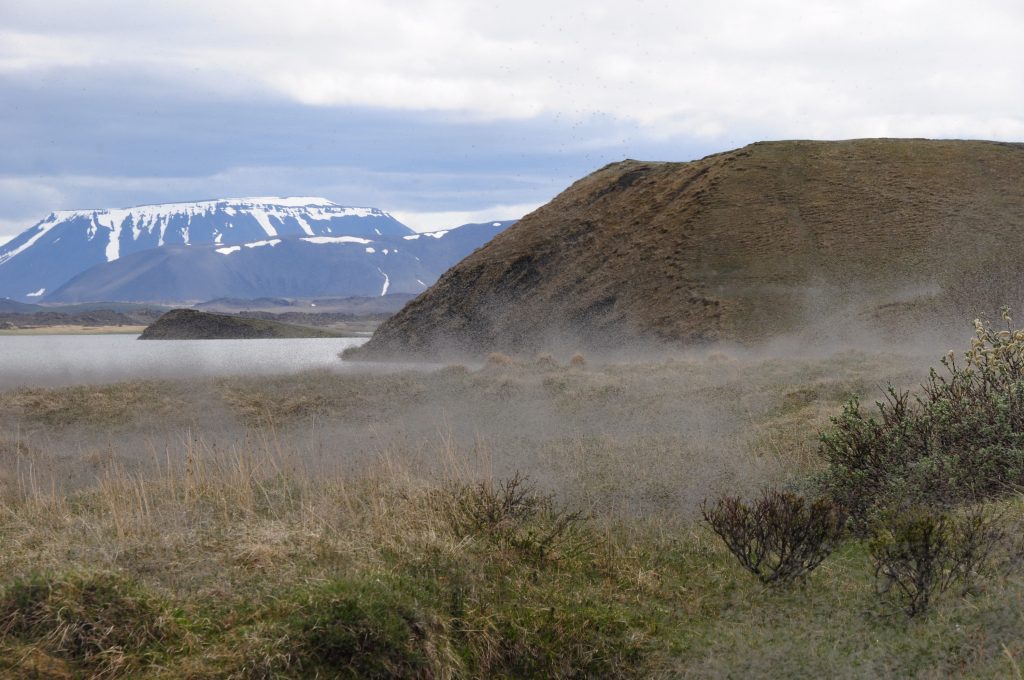 Swarms of midges rise out of a lake in northern Iceland in such enormous numbers every spring and summer that they can impair breathing and darken the sky, giving the lake its name—Myvatn, or “midge lake.”