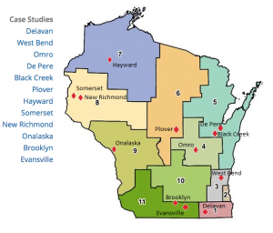 The communities studied were Delavan, West Bend, Omro, De Pere, Black Creek, Plover, Hayward, Somerset, New Richmond, Onalaska, Brooklyn and Evansville.