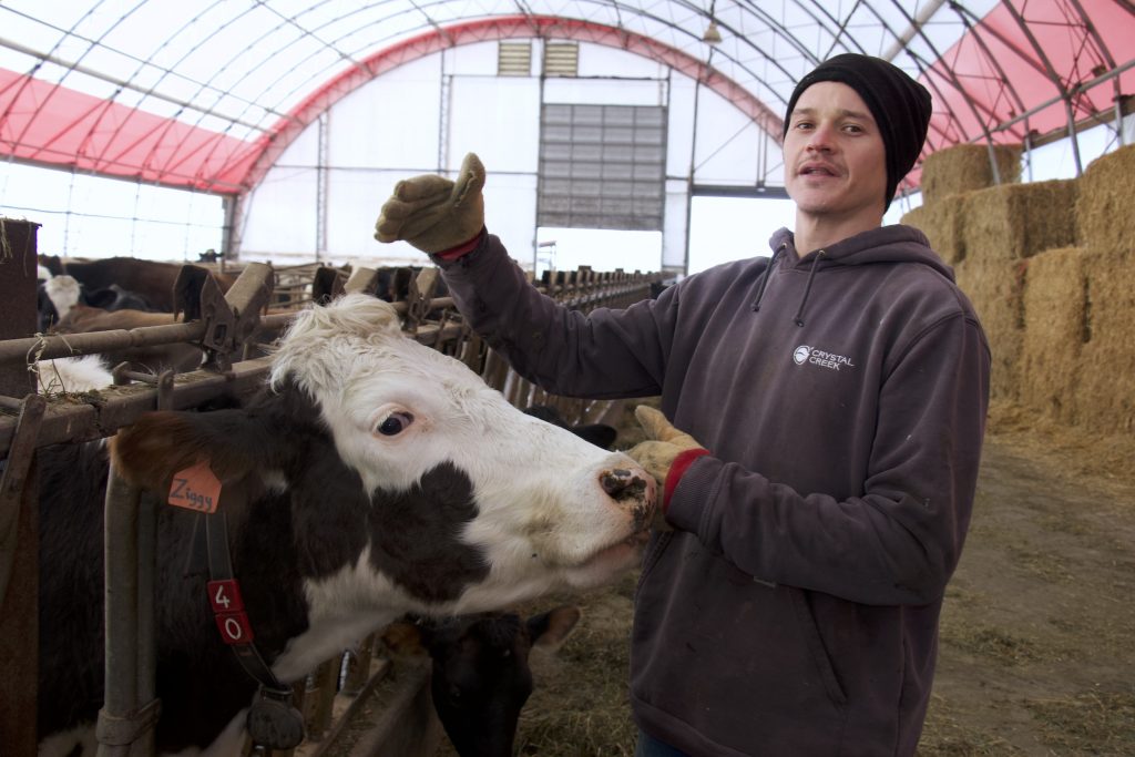 For someone who is always at the ready to fix the automatic milker (should something go wrong), Jaworski seems pretty laid back. Some of his cows, lured by the relief of an empty udder – or the ration of grain they are offered upon entering the milking stall — visit the robotic milker three or more times a day.