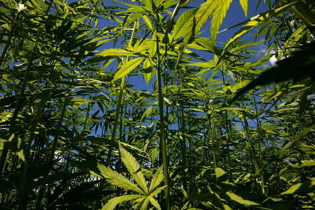 An industrial hemp test plot at Arlington Agricultural Research Station in Arlington, Wis., Tuesday, July 16, 2019. Photo by Michael P. King/UW–Madison CALS.