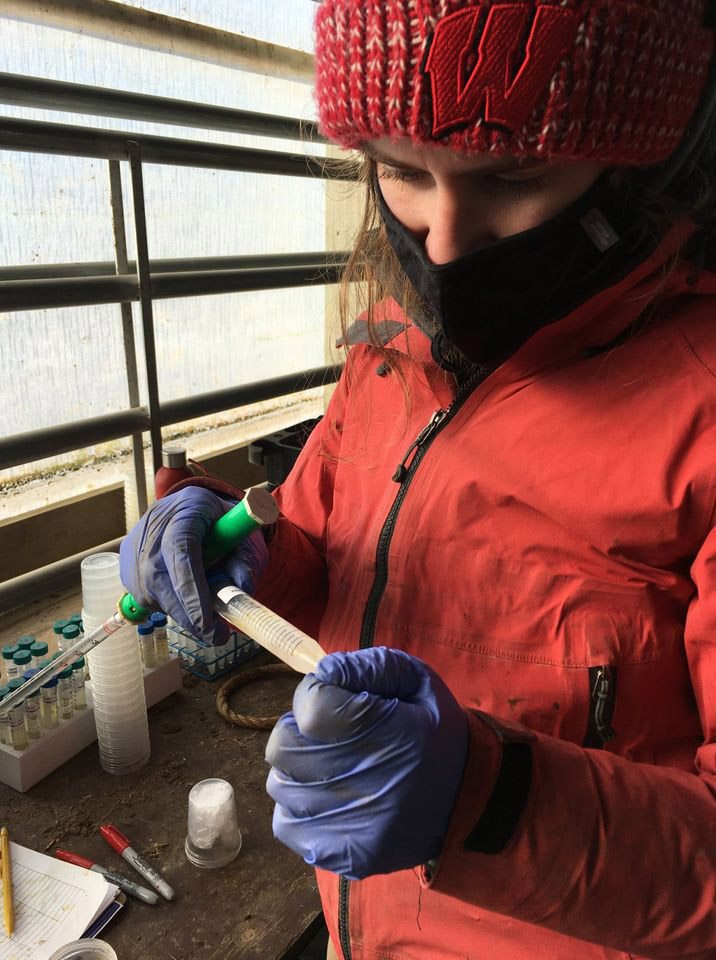 Kate Wells, graduate student in the animal and dairy sciences department, will work with a team of researchers to analyze grass species, fertilizer rates and economics of pastures set aside (stockpiled) as feed for late fall into winter. Wells will be working with Matt Akins (PI), animal and dairy sciences department; Jason Cavadini, Marshfield Agricultural Research Station; Tom Kriegl, emeritus, Center for Dairy Profitability; Valentin Picasso, agronomy department; Erin Silva, plant pathology department; and Michel Wattiaux, animal and dairy sciences department and CIAS.